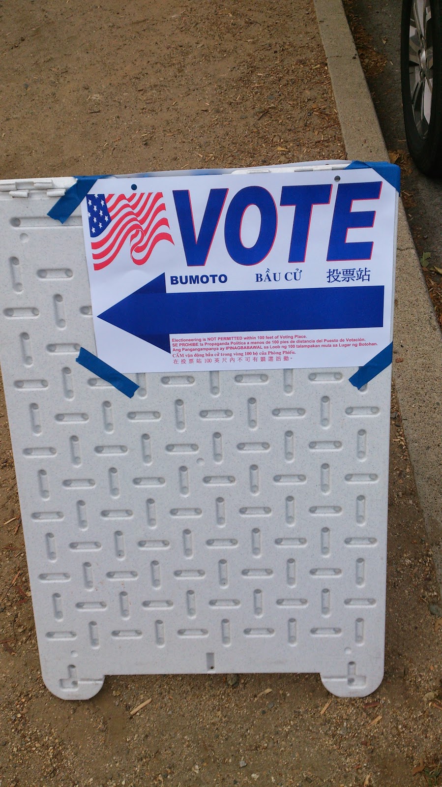 昨天收到弟弟小學校長的 email 還接到校長打來的語音電話通知. 原來今天是 加州初選. 弟弟學校因為是投票所, 所以校長提醒家長們最好提早出門, 或儘量走路, 或開車停遠一點的地方.