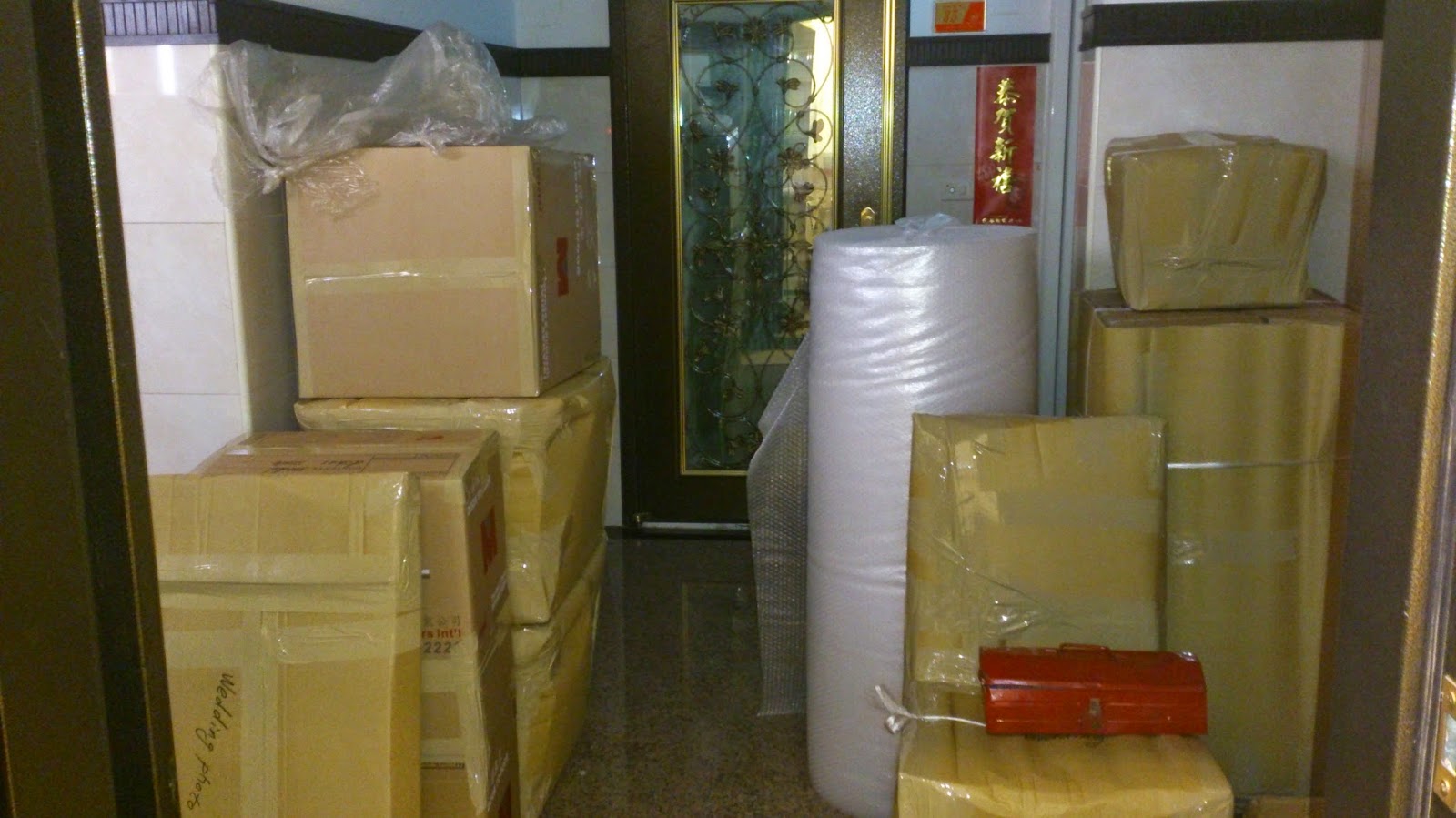 在約定的打包時間之前, 蒙特利爾就給我們幾個箱子, 讓我們可以把不想要他們幫忙打包的私人的物品自己先裝箱. 連膠帶也提供了.