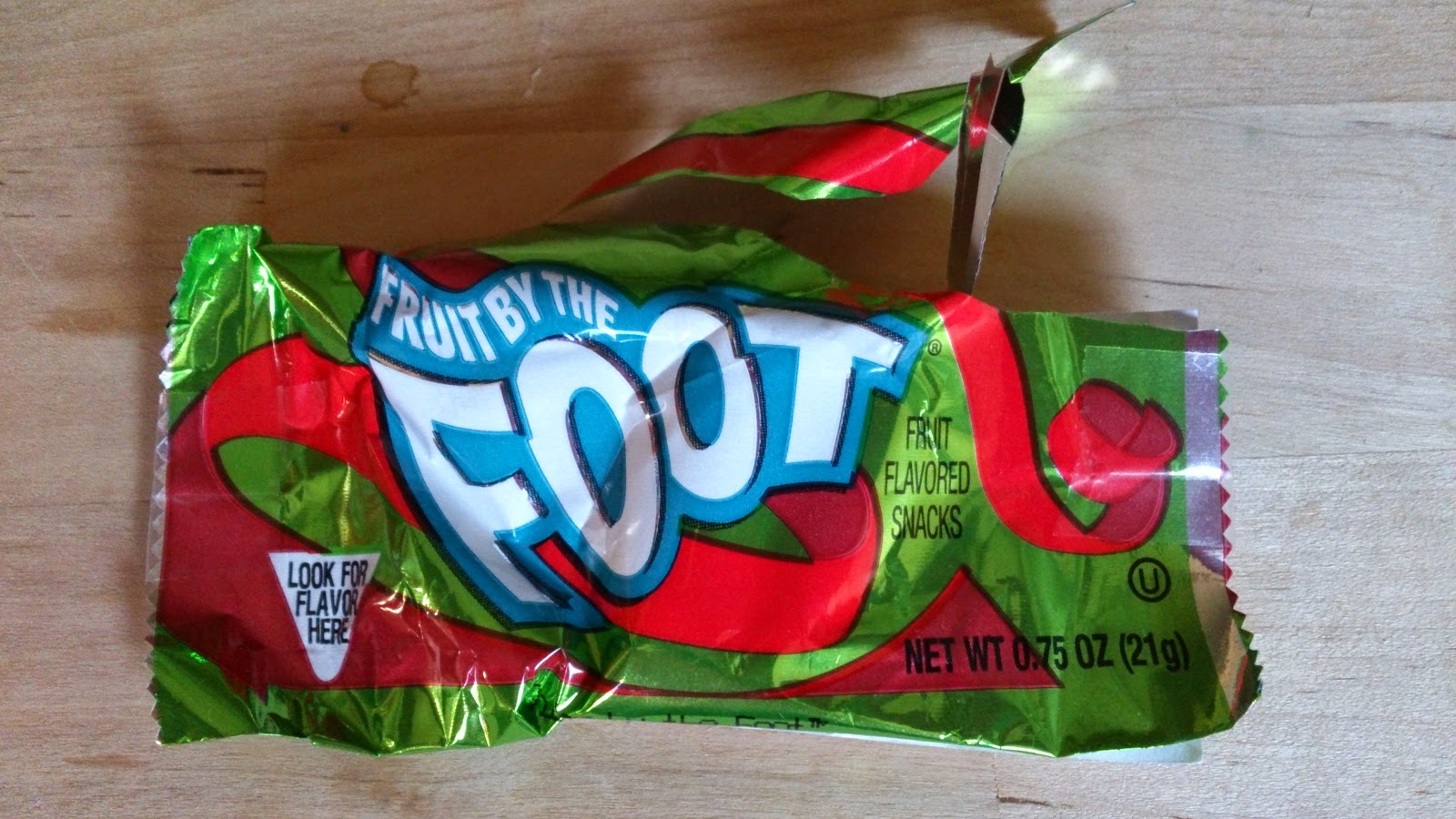 糖果正面. Fruit by the Foot, 是一種長長的糖果. |