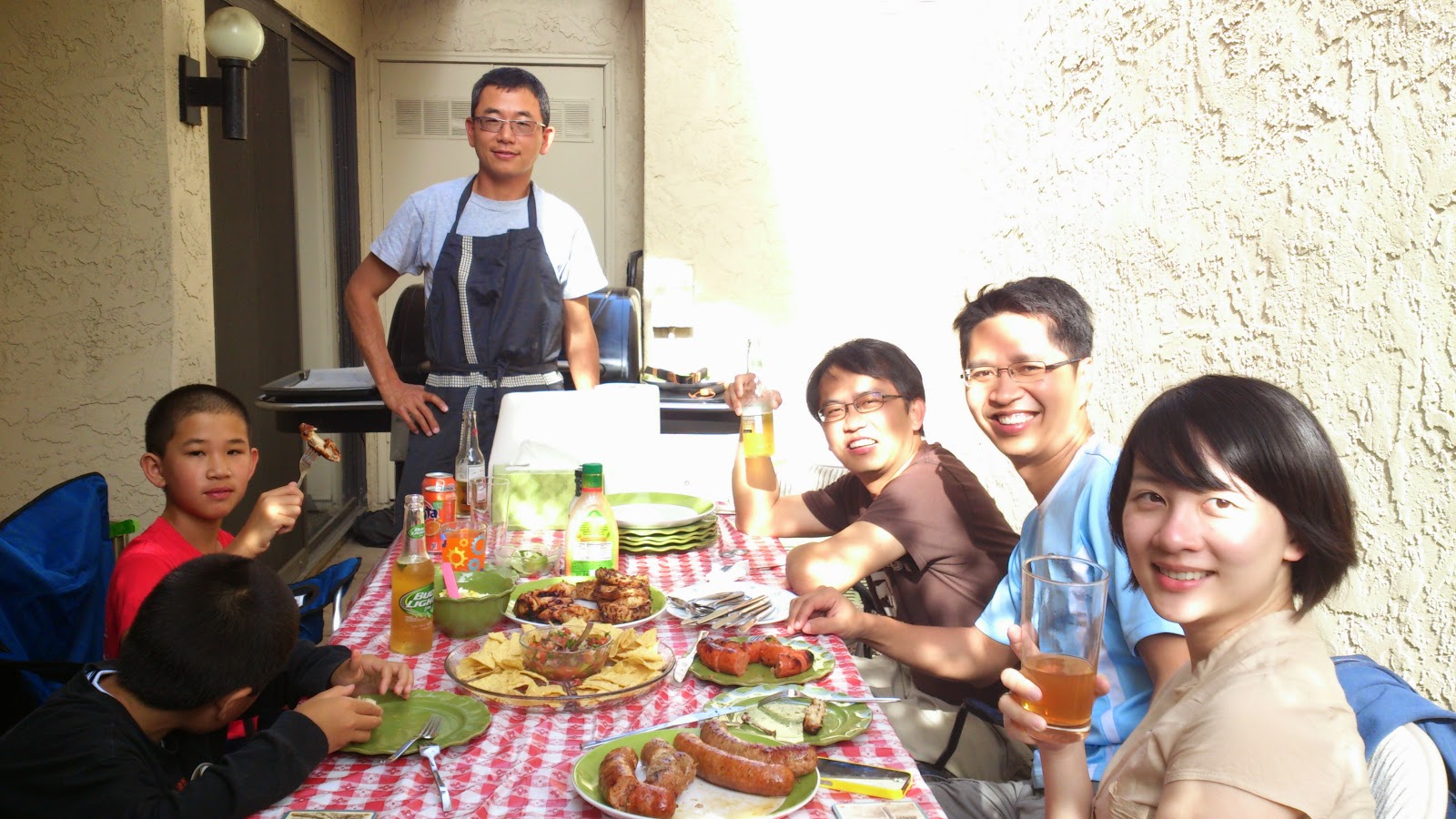 | 故意避開鏡頭的弟弟. 熊爸有大廚的樣子喔! |