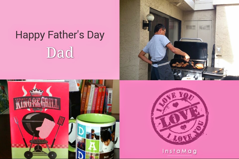 今天是美國父親節, 為了感謝熊爸平日愛家愛老婆愛小孩的好表現, 今年特地精心準備了給熊爸的禮物--一個照片馬克杯 + 2 shot glasses, 還有給愛烤肉的老公 The King of the Grill 父親節卡片. 弟弟也帶回之前在學校自製的印花頭巾當禮物. 剛好今天也招待熊爸來美出差的同事來家裡吃烤肉, 覺得自己真會選卡片啊!